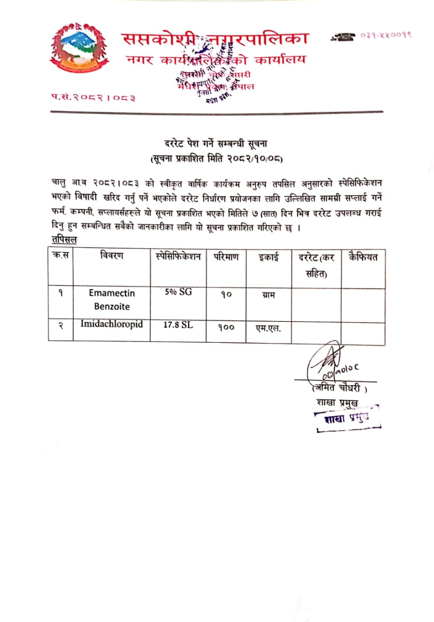 » कृषि विषादी खरिद सम्बन्धी सूचना।