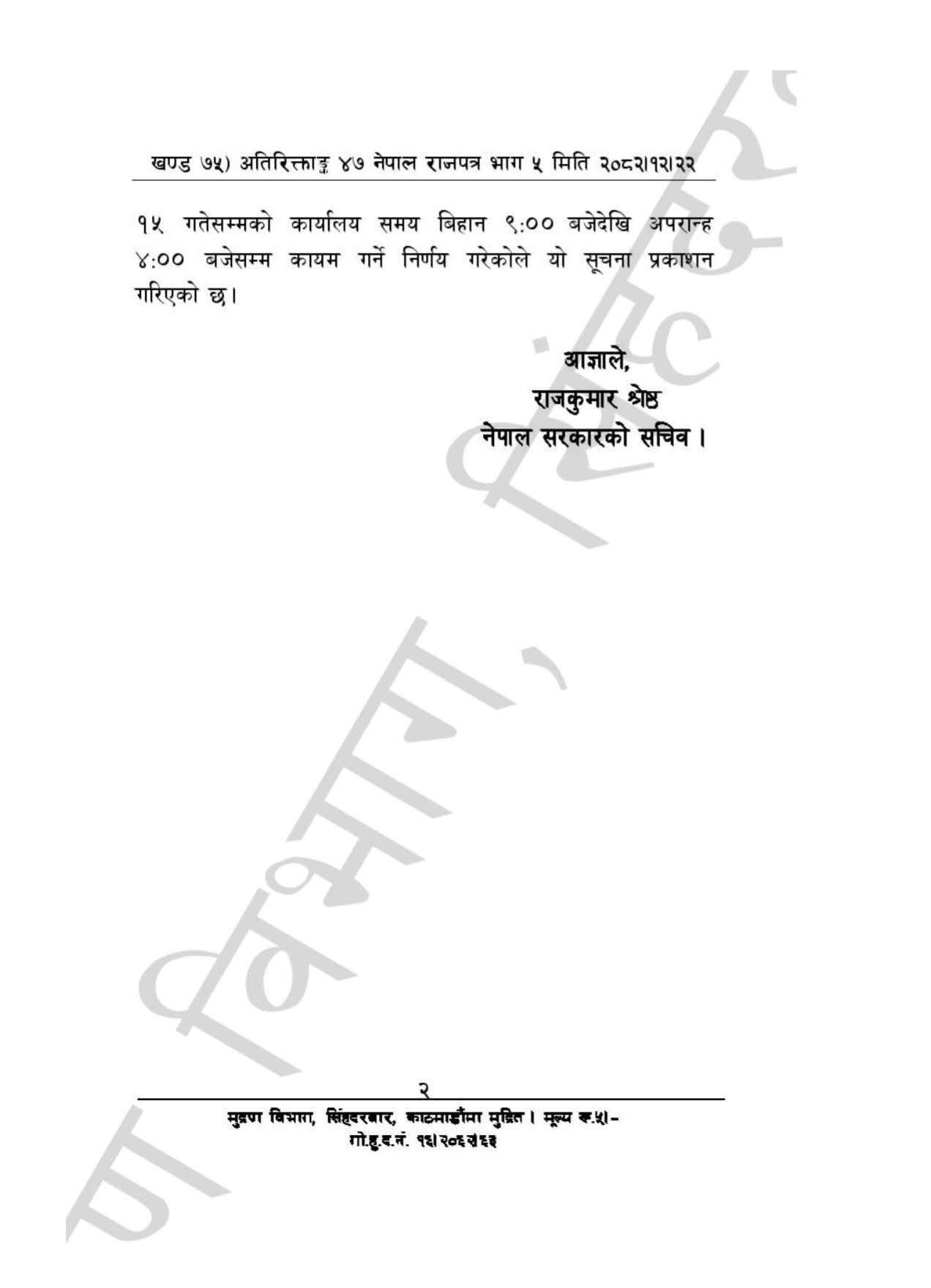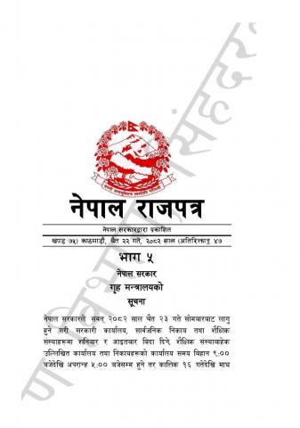 » नेपाल सरकारद्वारा प्रकाशित चैत्र २२ गते, २०८२ सालको नेपाल राजपत्र।