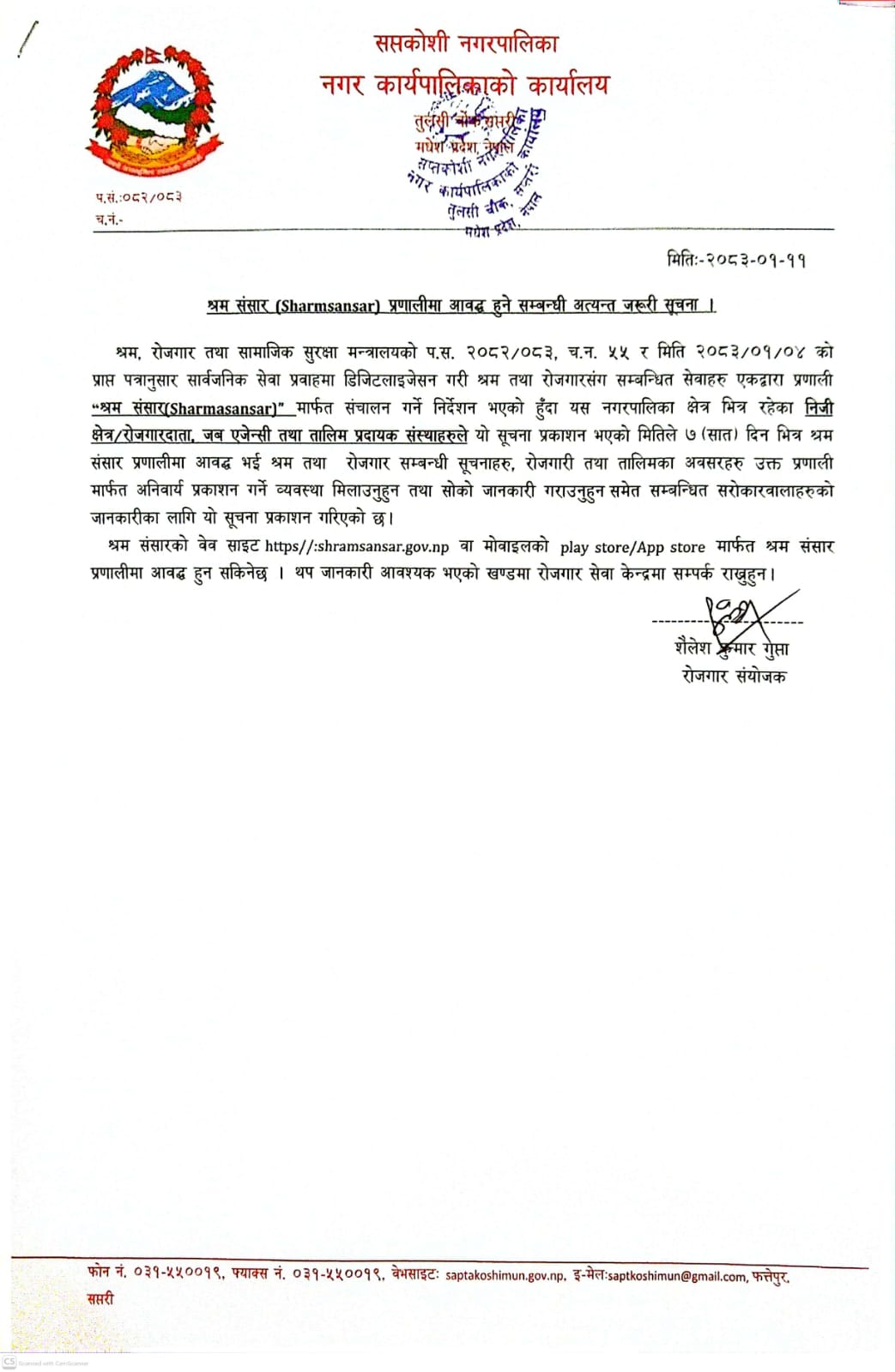 श्रम संसार (Sharmsansar) प्रणमालीमा आवद्ध हुने सम्बन्धी अत्यन्त जरुरी सूचना।