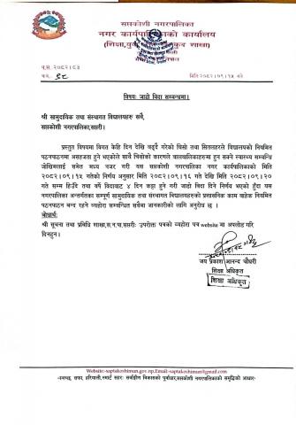जितिया पर्वको शुभकामना तथा स्थानीय बिदा सम्बन्धी सूचना।