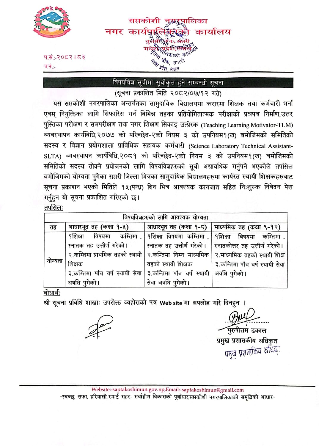 विषयविज्ञ सूचीमा सूचीकृत हुने सम्बन्धी सूचना।