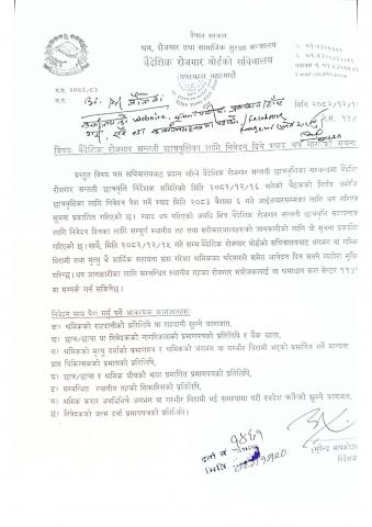 » बैदेशिक रोजगार बोर्डको सचिवालयको बैदेशिक रोजगार सन्तती छात्रवृत्तिका लागि निवेदन दिने म्याद थप गरिएको सूचना।
